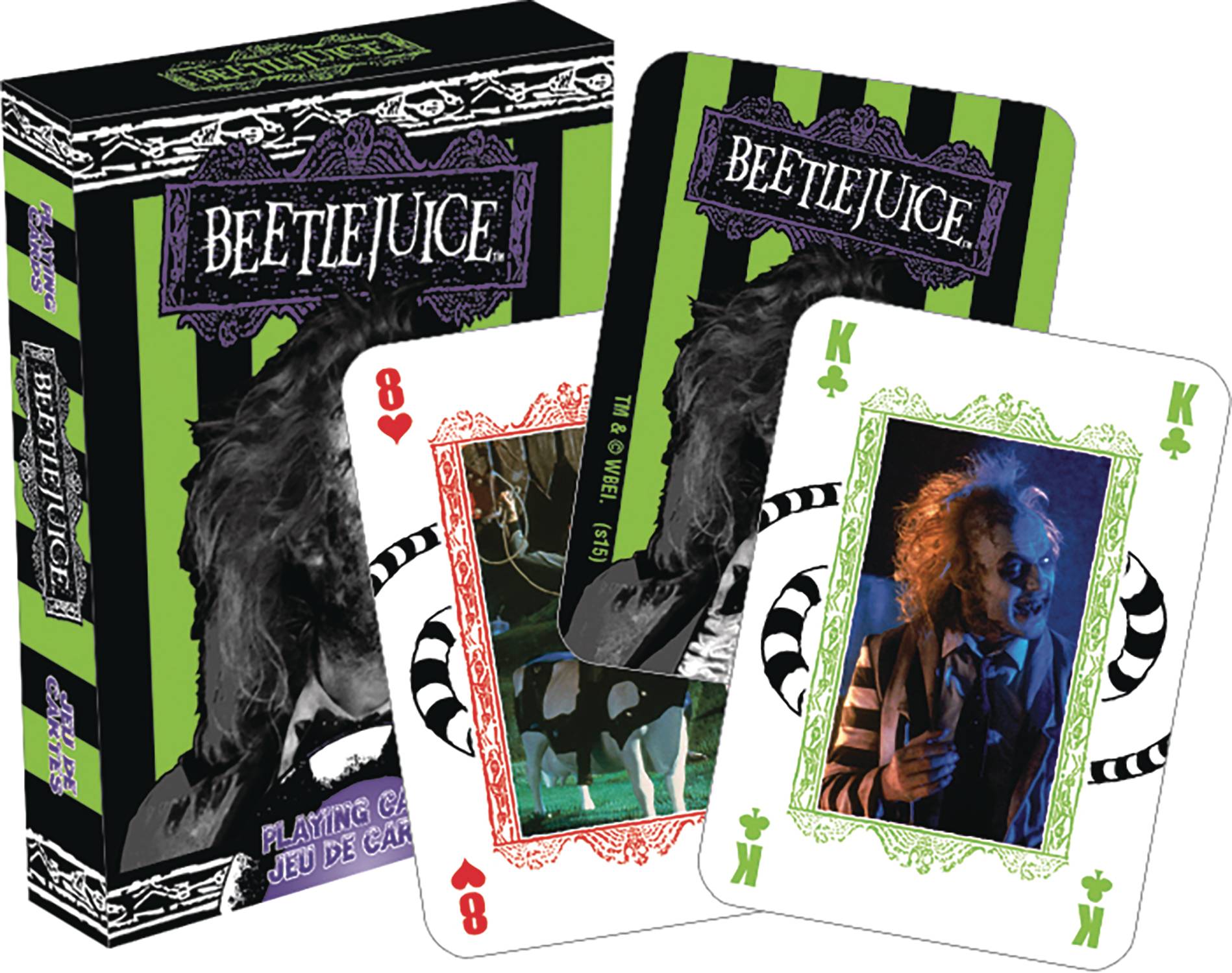 From NMR Distribution America. Play your favorite card games with friends and family with the official deck of Beetlejuice playing cards featuring art and designs from the classic movie Beetlejuice. This deck of playing cards includes 54 cards (52 playing cards and 2 jokers) featuring distinct themed designs and art.