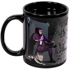 Take a coffee break with The Phantom with this wicked new heat changing mug by Ikon Collectables, featuring the Ghost Who Walks sitting on his stone throne with Devil by his feet as he takes a breather with a cuppa Joe.